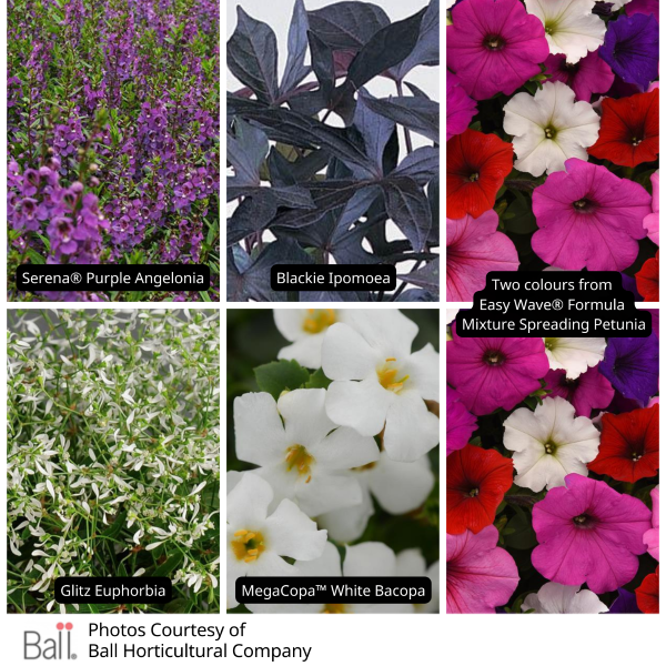 This pack contains a collection of six different plants to instantly plant up a basket or container. The combinations are selected by color and growth habits to create beautiful balanced displays. Plants will vary from those pictured.