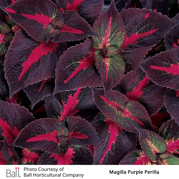 A completely versatile plant, perilla thrives in conditions from full shade to full sun. The coleus like purple leaves are both heat and cold tolerant, and combine beautifully with geraniums and New Guinea Impatiens alike. These plants grow up to 36 inches, so be sure to put shorter plants in front.