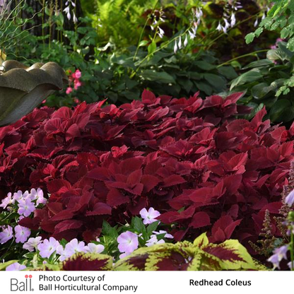 A vibrant plant with leaves that reach up to 12" in length. Plant in shade or morning sun only as stronger light can fade color. Use in shady corners of beds or mix with other shade lovers in containers. Leaf centres vary from bright rose to red and scarlet. Flowers can be left on or removed as they appear depending on your preference